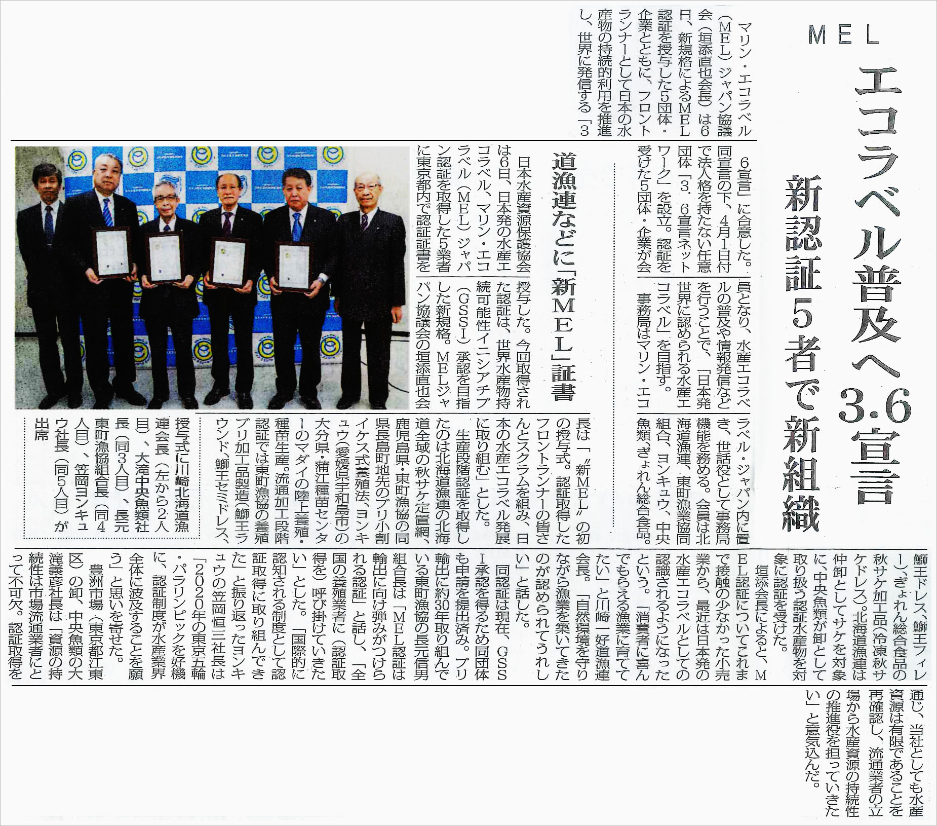 日刊水産経済新聞やみなと新聞に掲載されました。